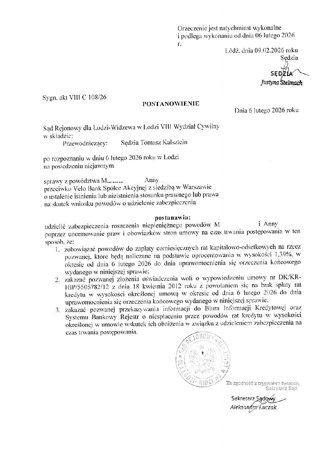 16 lutego 2026 Przełomowe zabezpieczenie w sprawie o WIBOR: Sąd obniża oprocentowanie kredytu do 1,39%